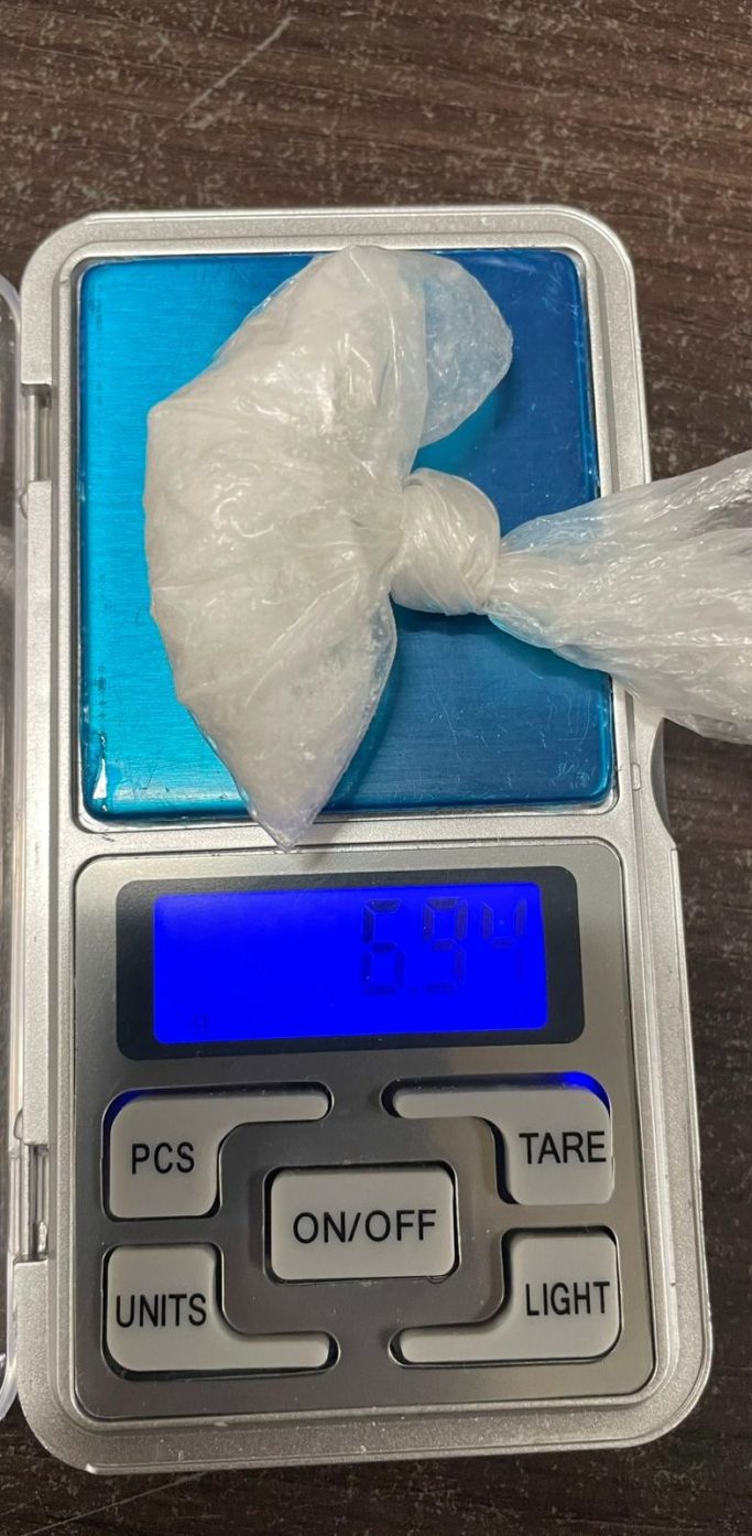 Al ser interceptado, adoptó una conducta nerviosa. Tras solicitarle una inspección preventiva, a la cual accedió, los oficiales localizaron en la bolsa delantera derecha de su pantalón un envoltorio de plástico transparente que contenía sustancia granulada al tacto, con un peso total de 6.9 gramos, el cual fue asegurado.