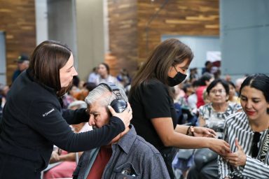 Durante el evento se realizaron exámenes de la vista y otras pruebas y se entregaron auxiliares auditivos, además de lentes de armazón, sillas de ruedas estándar y especiales, andaderas, muletas y bastones.