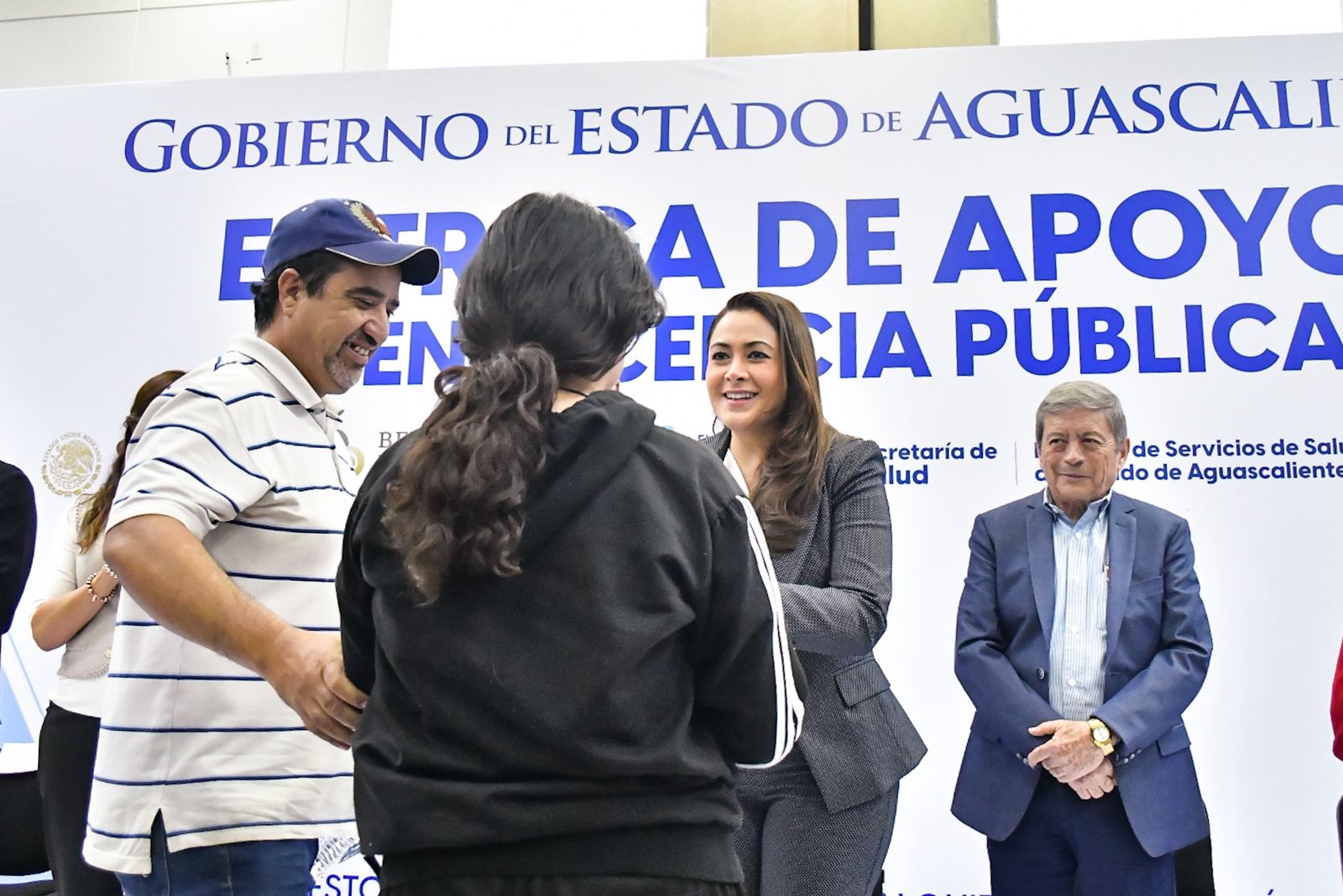 Acompañaron a la gobernadora Leonardo Montañez Castro, presidente municipal de Aguascalientes, y Alma Hilda Medina Macías, presidenta de la Comisión de Salud Pública del H. Congreso del Estado.